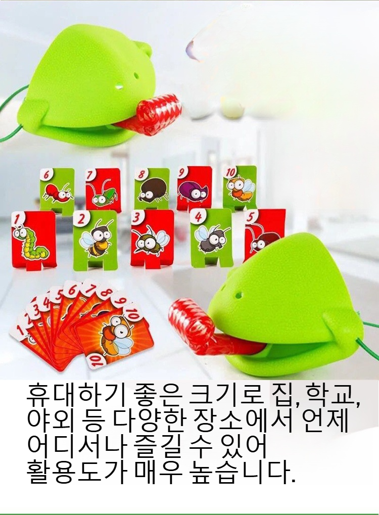 ● 변색 경쟁 개구리 혀 내밀기 테이블 게임은 가족 또는 친구들과 함께 즐길 수 있는 재미와 흥미를 동시에 제공하여 파티 분위기를 한층 더 업그레이드합니다. ● 개구리의 혀를 빠르게 내밀며 색깔을 맞추는 게임 방식으로 아이들의 집중력과 반사 신경을 자연스럽게 향상시킬 수 있습니다. ● 내구성이 뛰어난 소재로 제작되어 오랜 시간 반복해서 사용해도 변형 없이 안전하게 즐길 수 있어 선물용으로도 안성맞춤입니다. ● 간편한 규칙과 귀여운 디자인으로 남녀노소 누구나 쉽게 참여할 수 있으며, 지루할 틈 없이 계속해서 도전 욕구를 자극합니다. ● 휴대하기 좋은 크기로 집, 학교, 야외 등 다양한 장소에서 언제 어디서나 즐길 수 있어 활용도가 매우 높습니다.